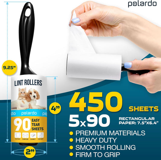 5-Pack Lint Rollers for Pet Hair – Sticky Remover for Clothes, Furniture & Carpet